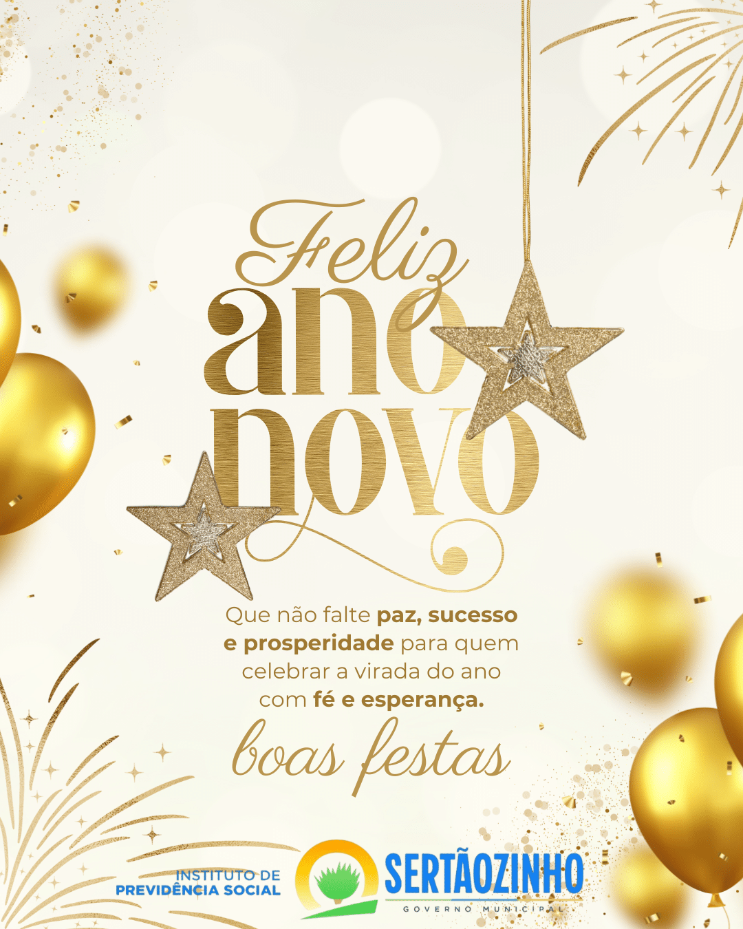 ✨ Feliz Ano Novo! ✨O IPMS – Instituto de Previdência de Sertãozinho deseja a todos os segurados, aposentados, pensionistas e servidores um ano novo repleto de saúde, paz e realizações.Que 2026 seja marcado pela responsabilidade, segurança e compromisso com o futuro de todos.Seguiremos trabalhando com transparência e dedicação. 🏛️🤝